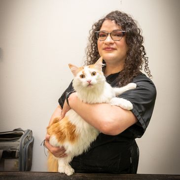 I specialize in caring for elderly and behaviorally challenged pets because I believe that every pet deserves a chance to look and feel their absolute best. I am also one of the shops cat groomers and provide nail trim services to small and exotic pets.” Luzienne.